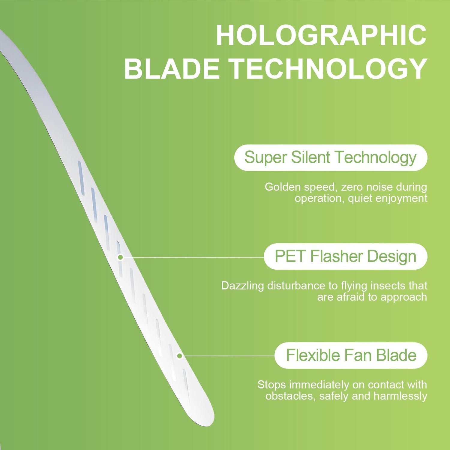 - Holographic blades diffuse light, simulating a threat to flying insects
