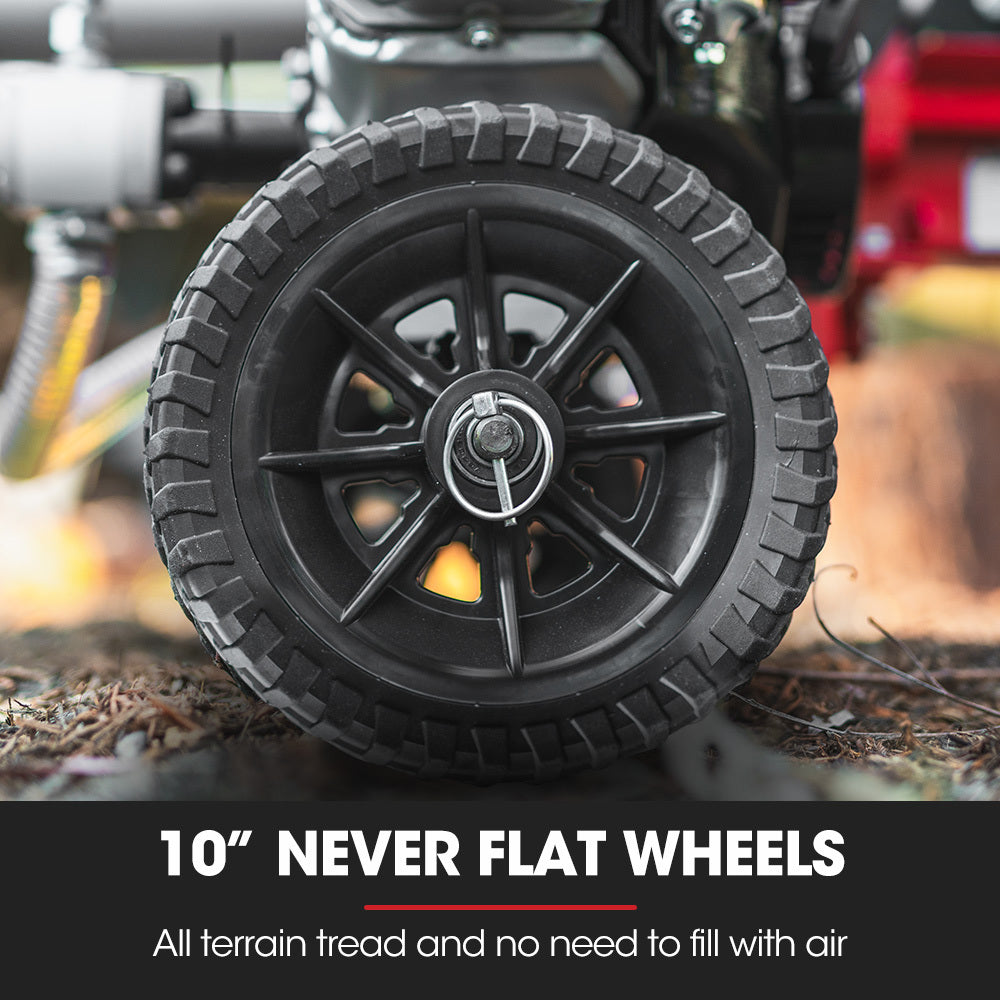 The Hercules HPS400 is easy to move into position thanks to its compact 72kg body and All Terrain 10-inch wheels, that never puncture or require filling with air.