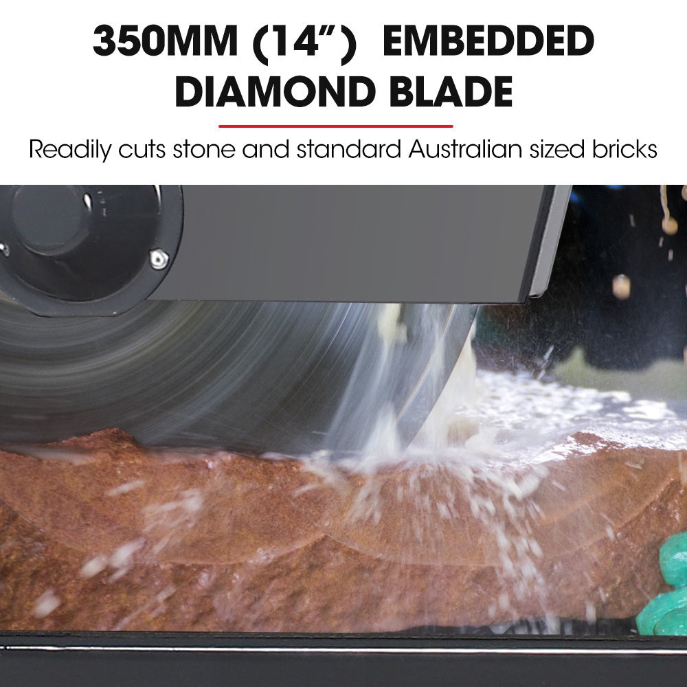 Equipped with a 350mm high-performance laser-embedded diamond blade, the BBS350 ensures optimal cutting results, enabling it to work with the toughest materials like marble, granite, and 'Nori' red brick.