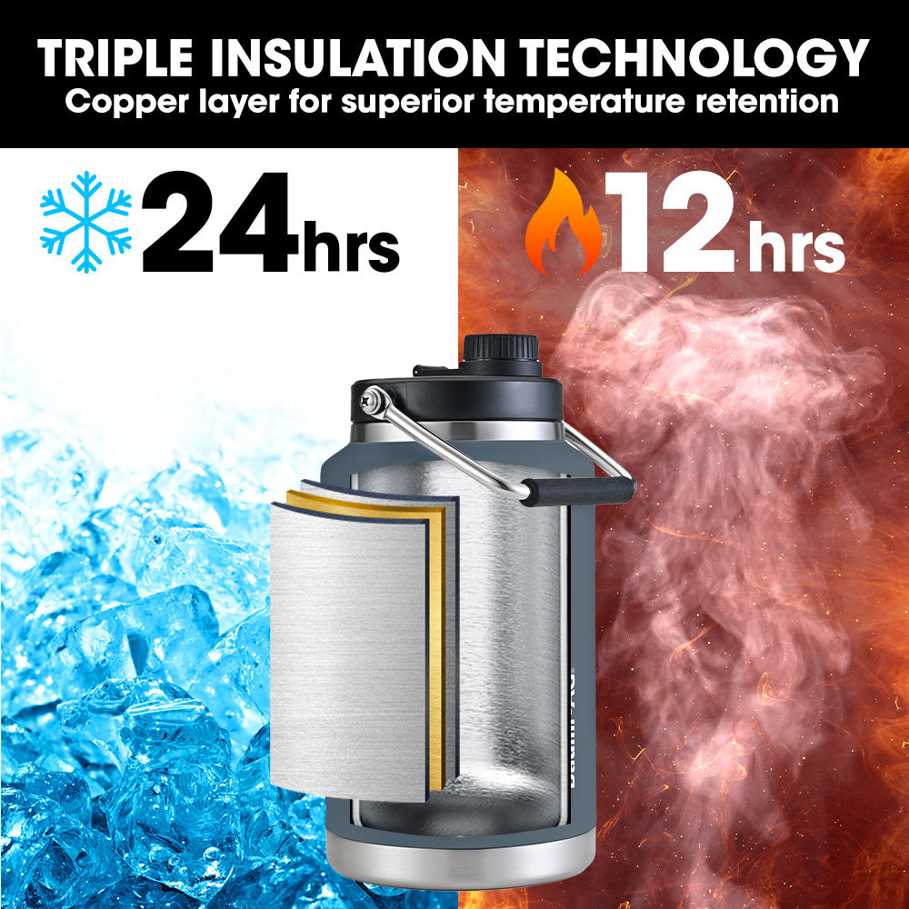 Baumr-AG 3.8L Double Wall Insulated Stainless Steel Water Bottle, Drink Jug with Handle, Blue