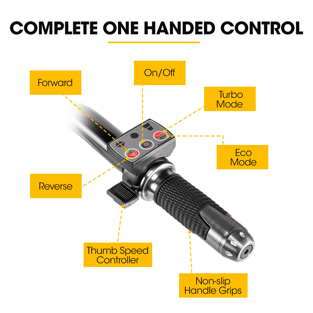 Enjoy the convenience of the 40V/6Ah removable Li-ion battery, providing over 4 hours of efficient operation on a single charge. The brushless gear motor delivers incredible torque, while the copper rotor and stator ensure reliable performance. Plus, you can remove the battery for an on-board or off-board charging time of just 3 hours, you'll experience minimal downtime.