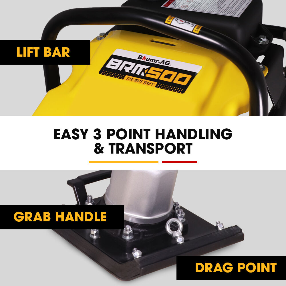 BAUMR-AG BRM-500 64KG Petrol Tamper Rammer Vibratory Plate Compactor, Lightweight, for Soil Sand Gravel Asphalt