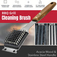 Keep your grill in pristine condition with this durable stainless steel barbecue cleaning brush. Designed for efficiency, it features a high-density bristle arrangement and an integrated scraper, ensuring a thorough cleaning of your grill grates. The sturdy acacia wood handle provides a comfortable grip and protects your hands from heat and splatter. This brush is the perfect tool for maintaining your grill, whether you're dealing with grease, rust, or tough residues.