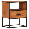 Equal parts minimalist and elegant, this wooden bed cabinet gives a nod to a vintage charm and industrial style. Made of solid acacia wood and powder-coated iron legs, the bedside cabinet is exceedingly stable and durable. Acacia wood is a dense and robust hardwood which has beautiful brown streaks and contours on its surface. This nightstand with 1 compartment and 1 drawer provides ample space for keeping your magazines, books, as well as various other small items within reach. Important note: The solid acacia wood shows natural grains, making each of the bed cabinet unique and slightly different from the next. The delivery is random, ensuring the exclusivity and individuality of your product.