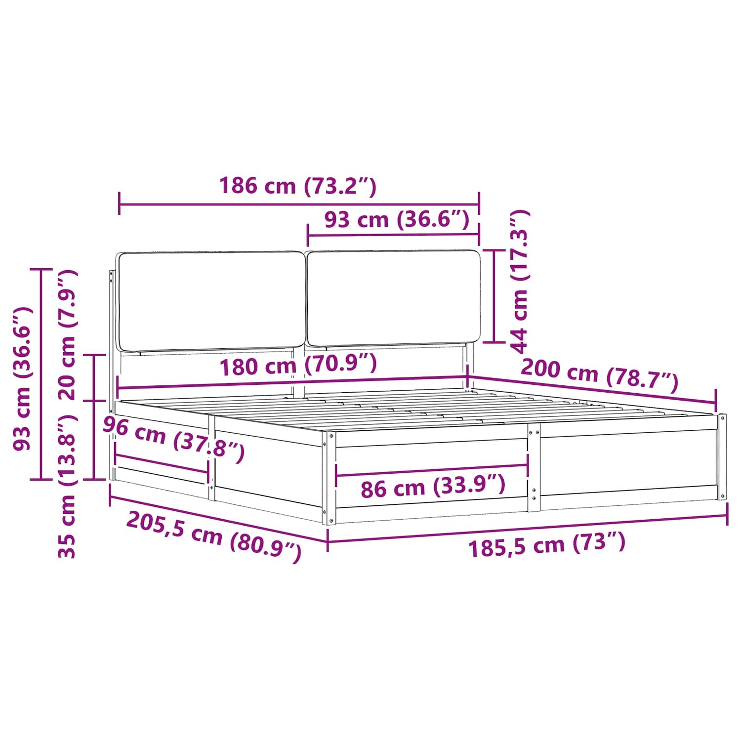 - Overall dimensions: 205.5 x 185.5 x 93 cm (L x W x H)