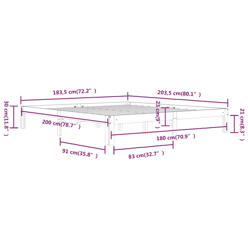 Take the modern route to your bedroom with this wooden bed frame! It makes a practical and decorative addition to your interior. Premium solid wood: Solid pine wood is a beautiful natural material. Pine wood has a straight grain, and the knots give the material its signature, rustic look.Stable bed frame: The wooden frame ensures sturdiness and stability.Sturdy slats: The plywood slats provide good weight distribution, ensuring that the mattress stays in place with every twist and turn of your body during sleep. Note:The delivery includes a bed frame only. The mattress is not included. You can check our shop for the matching mattresses.This bed frame is suitable for a mattress measuring 180 x 200 cm (6FT Super King).