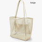 Beige Large Mesh Beach Tote Bag - Lightweight & Foldable Shoulder Bag with Secure Zipper Pocket