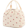 Beige Strawberry Pattern Corduroy Lunch Bag - Insulated Thermal Cooler Tote for School Work and Picnics