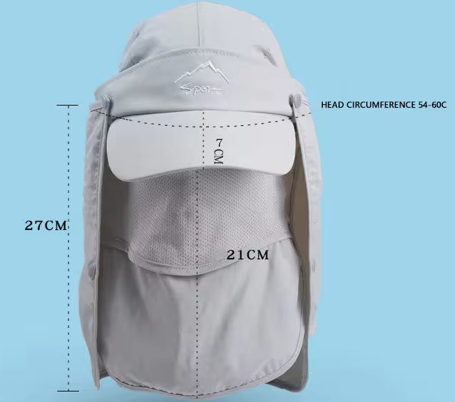 • 4-in-1 Design: Includes a wide brim, removable face flap, neck cover, and breathable mesh for all-around protection.