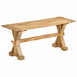 The solid wooden bench is a great addition to your living room or hallway. Durable material: Solid mango wood is a strong, tropical hardwood that makes sturdy furniture. Its beautiful wood grains make every piece of furniture slightly different from the next.Practical design: This bench seating is an ideal choice for eating and chatting with friends or family.Wide applications: This bench chair can also be used as a hall bench or dressing room bench. Good to know:Colours and grains vary per furniture item, making each piece unique. The delivery is random, ensuring the exclusivity and individuality of your product.