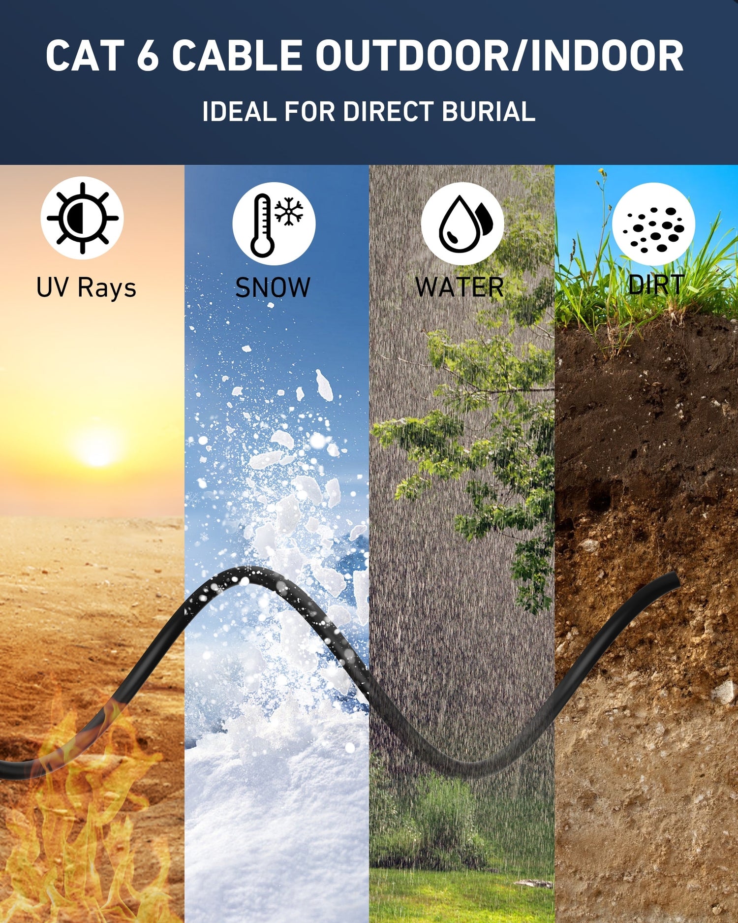 Durable PVC jacket resists water, UV rays, and extreme temperatures, ensuring reliable performance in outdoor environments.