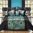 Add a splash of colour to your bedroom with this vibrant and trendy jungle print Kebo Black Quilt Cover Set by Bianca. Featuring tones of green, pink and blue and a black piped border it will bring any bedroom alive.