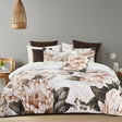 A spectacular floral design featuring autumn hues of white, taupe, pink, grey, brown, charcoal, and black, contrasted on a white background evoke a calming space. Printed on soft cotton sateen fabric and finished with a forest green piped edge, Somerset is certainly a quilt cover for any home.