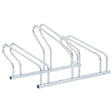 Utilise this bicycle stand to safely and efficiently park your bikes, saving valuable space.Sturdy and long-lasting: This bicycle stand is made of galvanised steel, making it sturdy, corrosion-resistant, long-lasting, and lightweight for easy movement.Space-saving: This bicycle stand has a high-low wheel design and accommodates three bikes without handlebar tangling, optimising space for efficient parking.Stable structure: You can fasten the bicycle stand securely using the provided screws to prevent your bike from tipping or falling, ensuring it remains stable.Wide applications: This bicycle stand is perfect for accommodating multiple bikes with tyre widths of up to 55 mm and is suitable for indoor and outdoor use in various settings, including garages, warehouses, schools, shops, and more.