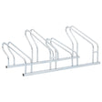 Utilise this bicycle stand to safely and efficiently park your bikes, saving valuable space.Sturdy and long-lasting: This bicycle stand is made of galvanised steel, making it sturdy, corrosion-resistant, long-lasting, and lightweight for easy movement.Space-saving: This bicycle stand has a high-low wheel design and accommodates four bikes without handlebar tangling, optimising space for efficient parking.Stable structure: You can fasten the bicycle stand securely using the provided screws to prevent your bike from tipping or falling, ensuring it remains stable.Wide applications: This bicycle stand is perfect for accommodating multiple bikes with tyre widths of up to 55 mm and is suitable for indoor and outdoor use in various settings, including garages, warehouses, schools, shops, and more.