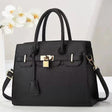 Elegant PU Leather Handbag with Lock Decoration - Structured Tote Bag