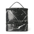 Black Marble Double-Layer PU Nail Polish Storage Case with High Capacity for Essential Oils and Nail Lamp - Portable & Adjustable