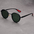 Black-rimmed Green Lenses Retro Round Sunglasses Vintage Metal & PC Frame Casual Classic Style for Men and Women - Lightweight 137mm Width