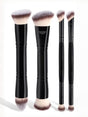 Black Versatile 4pc Dual-Ended Makeup Brush Set - Soft Synthetic Bristles for Foundation Blush Contour Concealer