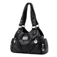 Black Vintage Soft Leather Hobo Bag for Women - Multi-Pocket Shoulder Purse & Crossbody Handbag