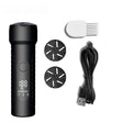 Rinse the device under water after use and dry thoroughly. Clean grinding heads with the included brush and store in a dry place. Charge using the provided USB cable, ensuring the device is powered off during charging.