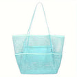 Blue Breathable Mesh Beach Tote Bag - Large Capacity Sand-Free Bag with Zipper Pocket & Multi-Purpose Storage