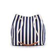 Blue Stripes Canvas Bucket Tote Bag with Leather Handle