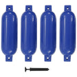 This blue inflatable boat fender, with a size of 51 x 14 cm, has a smooth design in high-gloss finish. It brings maximum mooring protection to boats when tied to cleats or rails. The reinforced eyelets on both ends allow you to hang the boat fender either vertically or horizontally with thick ropes. Made of PVC, it is endowed with superior strength and durability for years of use. Delivery includes 4 boat fenders and one pump. Reminder: Once the boat fenders have air in them and are formed, use 1-2 more pumps, and your boat fenders are ready to use. If using an air compressor, there should be about ½ inch squeeze in the boat fender. Never overfill your boat fenders!