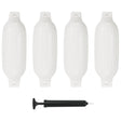 This white inflatable boat fender, with a size of 41 x 11.5 cm, has a smooth design in high-gloss finish. It brings maximum mooring protection to boats when tied to cleats or rails. The reinforced eyelets on both ends allow you to hang the boat fender either vertically or horizontally with thick ropes. Made of PVC, it is endowed with superior strength and durability for years of use. Delivery includes 4 boat fenders and one pump. Reminder: Once the boat fenders have air in them and are formed, use 1-2 more pumps, and your boat fenders are ready to use. If using an air compressor, there should be about ½ inch squeeze in the boat fender. Never overfill your boat fenders!
