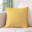 Bright Yellow Plush Striped Pillow Covers 45x45cm - Set of 4 Corduroy-Style Cushion Covers with Invisible Zipper, Soft and Washable for Sofa Decor