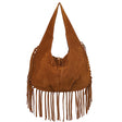 Brown Boho Chic Fringed Hobo Bag - Large Capacity Soft Faux Suede Shoulder Tote with Tassel Detail