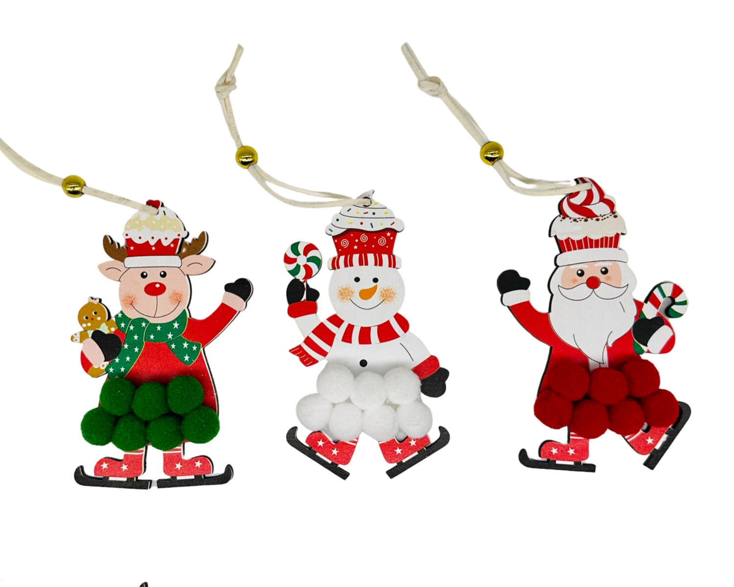 24 x Xmas Red & Green Mdf Pompom 3 Assorted