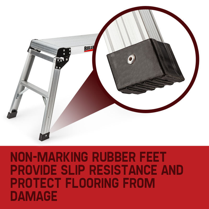 Made of strong anodised aluminum alloy, the platform features sturdy positive locking legs and skid resistant feet, for added safety and stability.