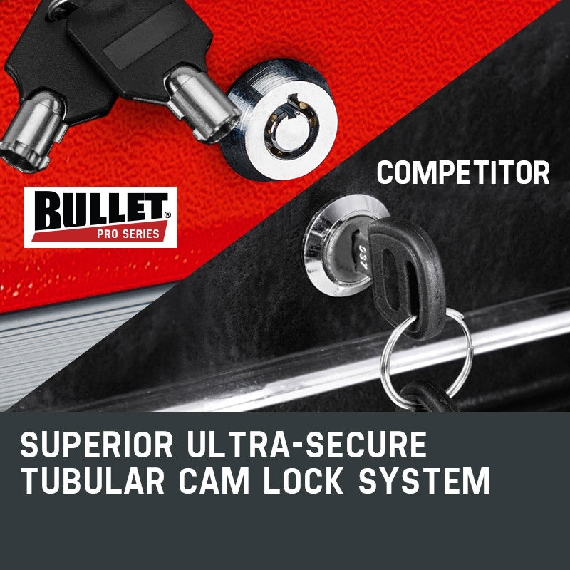 The drawers of the tool chest have varying depths and sizes to accommodate all types of equipment and parts. This compact unit fits discreetly in even the smallest spaces or storage areas. It features a superior tubular cam-lock system for optimal security, making it the ideal storage for valuable and often "borrowed" items.