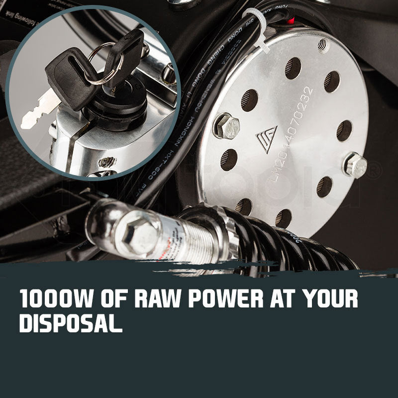 The BULLET Stealth1-6 packs a serious 1000 watt motor run by four 12-volt batteries. Rack up to 35km* on a single charge, or hit the turbo button for seriously addictive acceleration and a maximum speed of 50km/h*. This BULLET is the business.