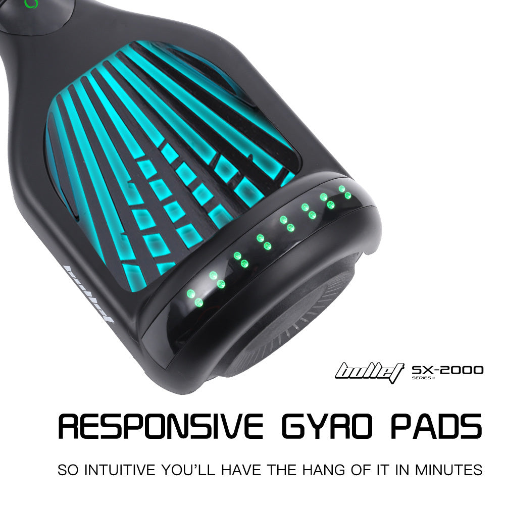 Experience a next level hoverboard with the state-of-the-art Bullet SX-2000. Its high-speed chipset reacts instantly to your body’s movements, offering highly responsive acceleration, turning, and reversing.