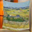 Bumper Harvest Elegant Artistry Shawl - Large 130cm Square Scarf with Oil Painting Print & Hand-Rolled Hem