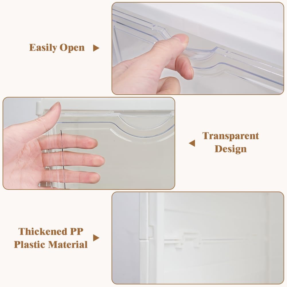- CLEAR FRONT DOOR FOR EASY VIEWING: Each box features a transparent drop-front door, allowing you to quickly identify the pair you need without opening every box. Perfect for displaying sneakers, heels, or everyday footwear.