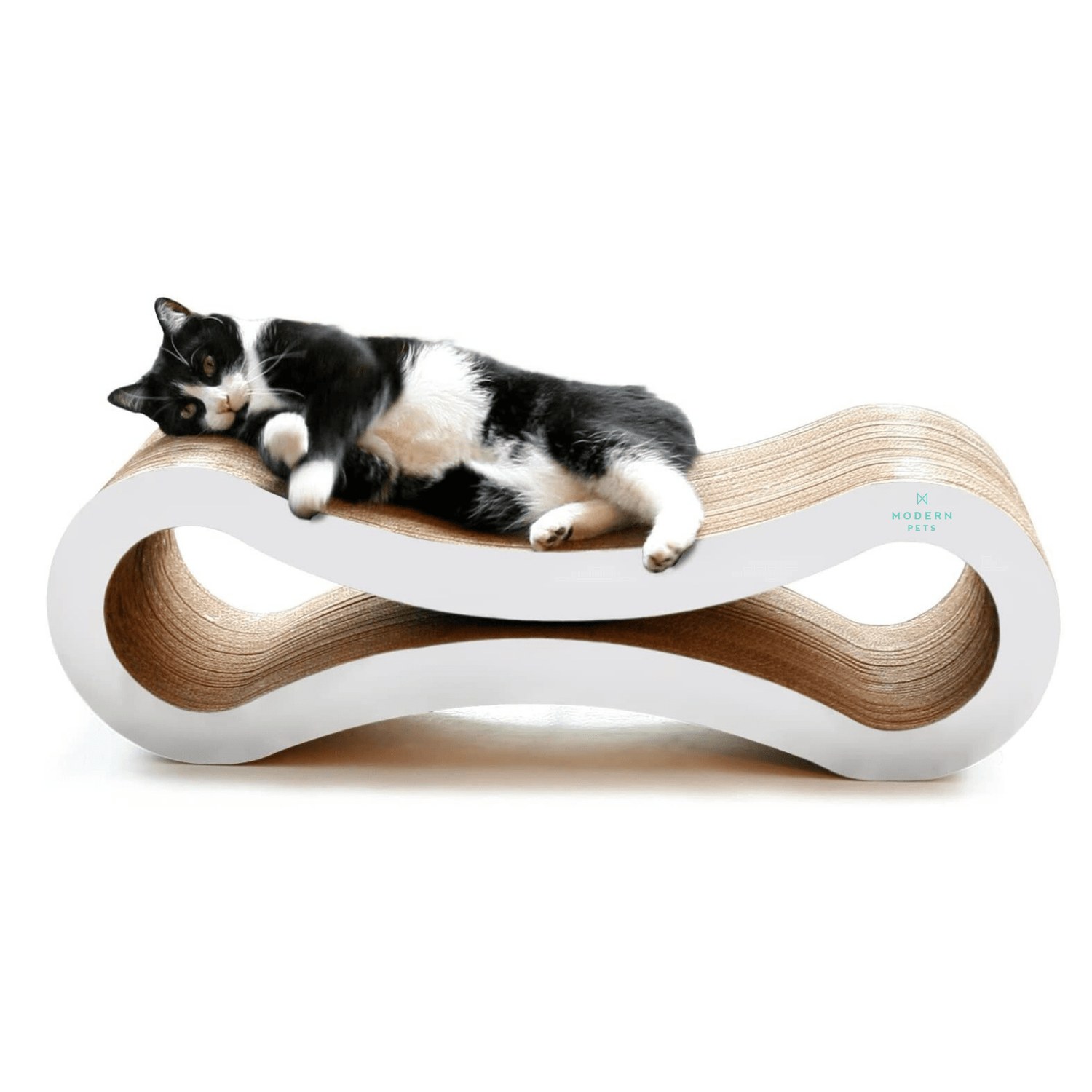 If youre tired of ugly cat scratchers taking up space in your living area, the Cat Scratcher Infinity Lounge may be the perfect solution. This functional cat scratcher will keep your kitty claws in perfect shape while providing an air of sleek modern style to your home. The infinity shape also provides a place for your cat to sleep, even if it is just a little catnap. The best thing about this cat scratcher is when the top becomes worn, simply flip it over and its brand new again!