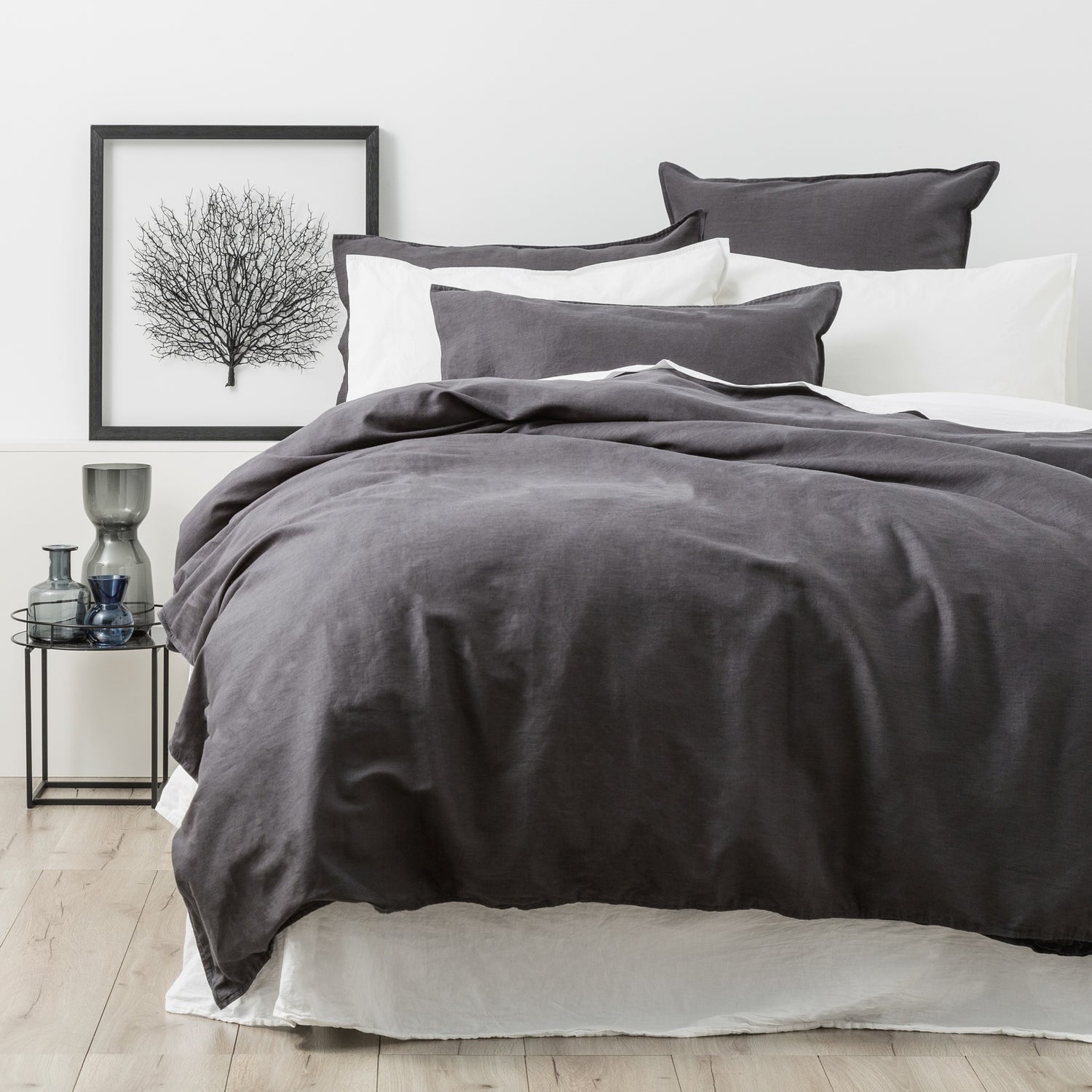 Renee Taylor Cavallo Stone washed 100% Linen Quilt Cover set and European Pillowcase