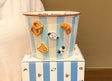 - Whimsical Design: Features a classic striped pattern with cute 3D appliqués of cartoon characters and baked goods.