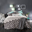 A classy yet modern quilt cover that is a perfect addition to any bedroom. The chevron print pattern with a textured printed background encompasses simplistic colours of white, grey, and black. It is made from easy care Polyester Cotton fabric that is smooth to the skin.