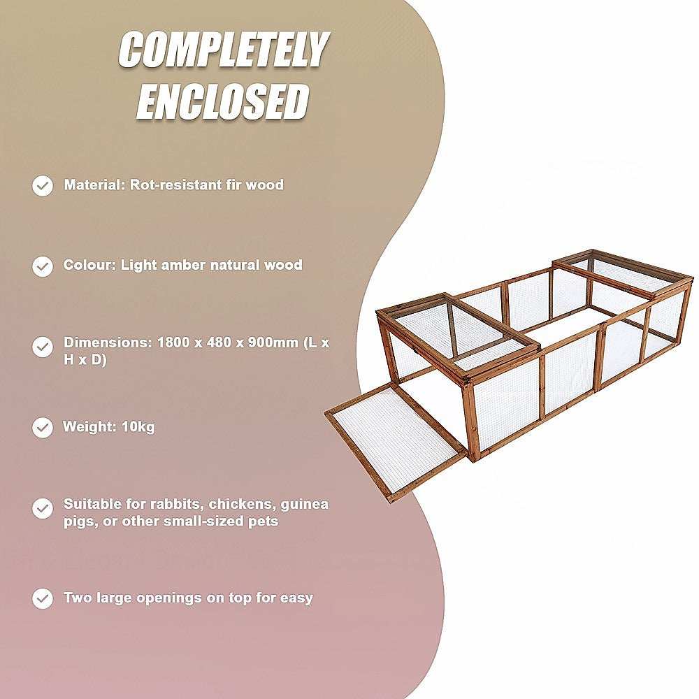 With its natural, light amber colour and rustic look, it will look great in your garden or backyard. Access it easily for cleaning or to retrieve a pet through its two top openings. It's completely enclosed, so you'll never need to worry about your furry or feathered friends getting loose in your neighbourhood. Give your pets a little more space to stretch their legs this year. Get your add-on run today!