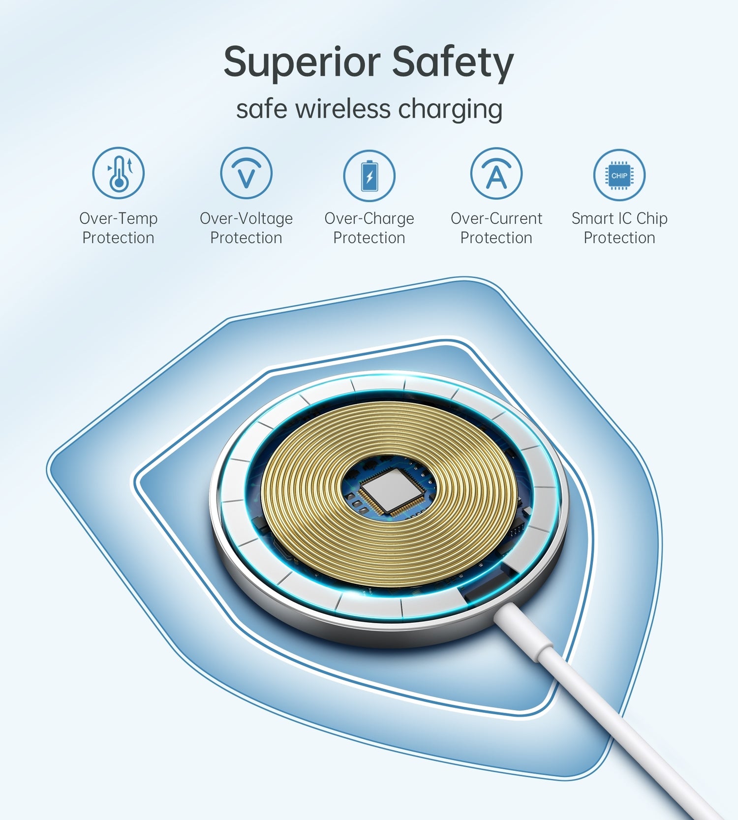 Supports 15W, 10W,7.5W, 5W and 2.5W five charging modes