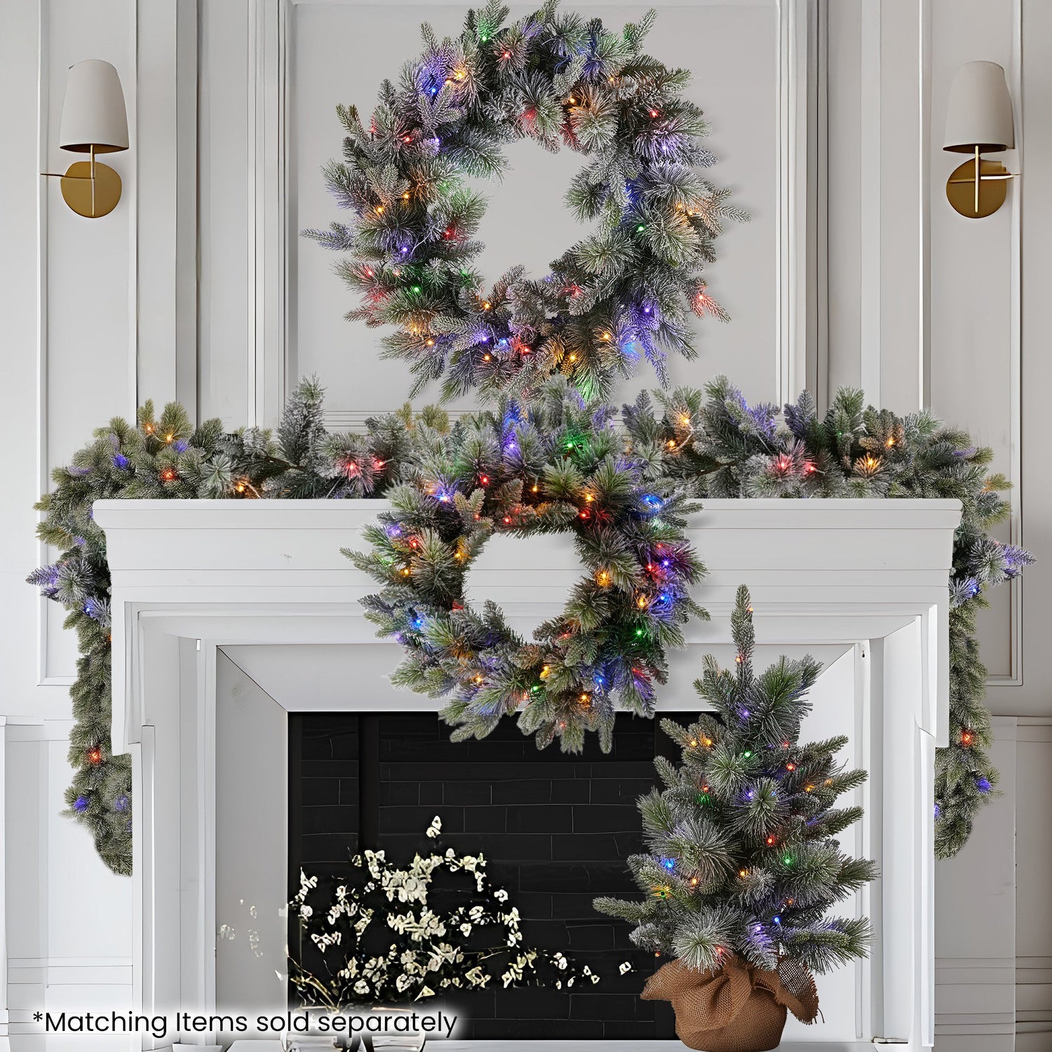 - Snow-flocked finish