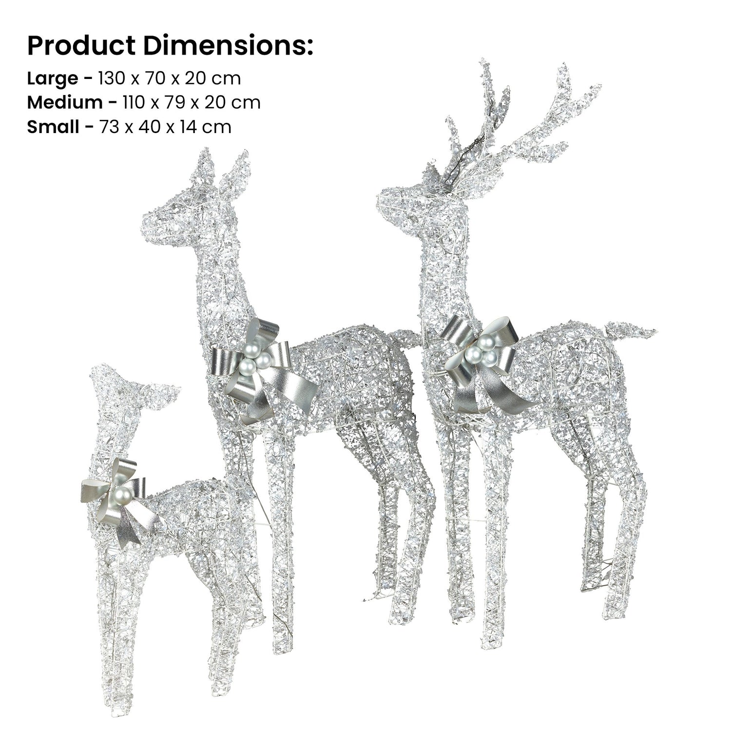 Christabelle Christmas Reindeer Display Set 3 Indoor & Outdoor Decorations Acrylic Beads Cool White LED Lights Silver