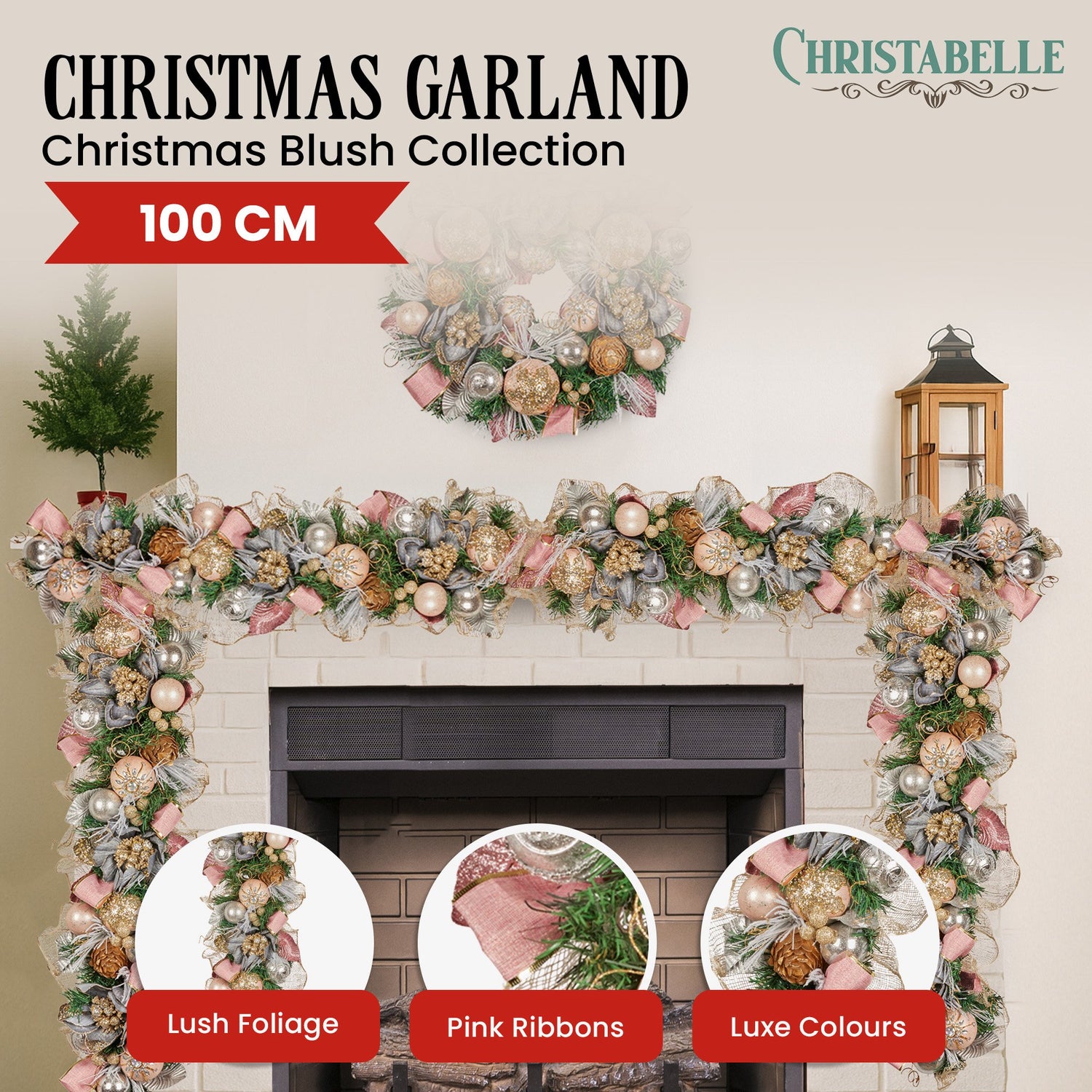 Christabelle Premium 100cm Christmas Garland Jewelled Baubles & Berries Tree Decoration Ornament Pink Silver Gold