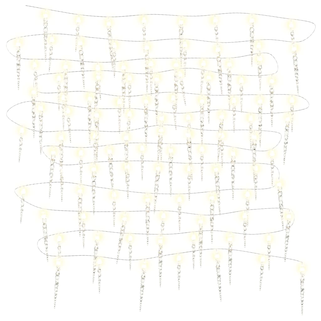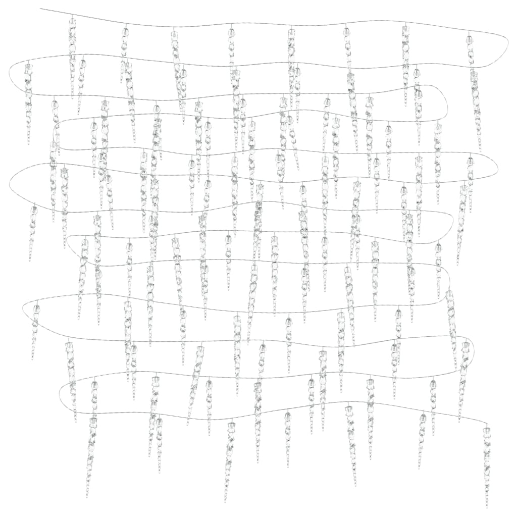 Light up your roof line or windows and create a festive atmosphere during Christmas with the icicle light! 8 lighting modes: The outdoor icicle light has 8 different lighting effects (combination, in wave, sequential, slow glow, chasing/running water, slow fade, twinkle/flash and steady on), you can switch the lighting modes by pressing the button on the USB to create different holiday atmospheres.Waterproof materials: The LED icicle light is made of waterproof materials PVC and acrylic, perfect for indoor and outdoor use. Additionally, the clear acrylic material gives the icicle a look of real ice.100 LED icicle lights: This light string comes with 100 energy-saving LED icicles in total that will create a magical light show!Wide applications: The twinkly icicle light is perfect for parties, Christmas, Halloween, eaves, yards, trees, gardens, and outdoor decorations. Good to know:If you use this product outdoors, ensure that the USB connection is plugged indoors in a dry environment.The product has a USB connector, but the certified 5V USB power source is not included.