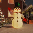 This inflatable snowman is definitely a great choice if you're looking for an impressive decoration for your house or yard at Christmas time. Practical material: Made of Oxford fabric with a PU coating, this Xmas decoration is weather-resistant and easy to clean.Built-in LED lights: The inflatable snowman features LED lights built inside, which enhance the festive atmosphere and make your house stand out.Quick inflation and deflation: The blow up decoration has a built-in fan and can be easily inflated in minutes. Unplug the adapter, and the holiday decoration automatically deflates for easy storage. Note:Each product comes with an assembly manual in the box for easy assembly.