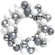 This Christmas wreath creates a bright and festive atmosphere in your home, ideal for holiday events. Shatterproof material: This Xmas wreath is made from polystyrene that combines the charm of real glass with the excellent shatter-resistant performance of plastic.Reusable wreath: The Christmas hanging decoration is not easy to fade or deform. When not in use, it can be easily stored for the next holiday's use.Easy to hang: The hanging Christmas decor comes as a whole, and you just have to hang it on a hook (hook not included) to decorate your living space.Wide application: The Christmas door wreath contains 82 Christmas balls in 3 different sizes. It’s very suitable for dressing up the front door, fireplace, window, walls, outdoor garden, shop windows, etc.